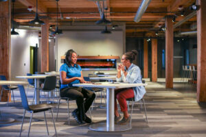 Imani Fluellen meets with student advisor, Dominesha Newton, at SBEC’s offices in downtown St. Louis.